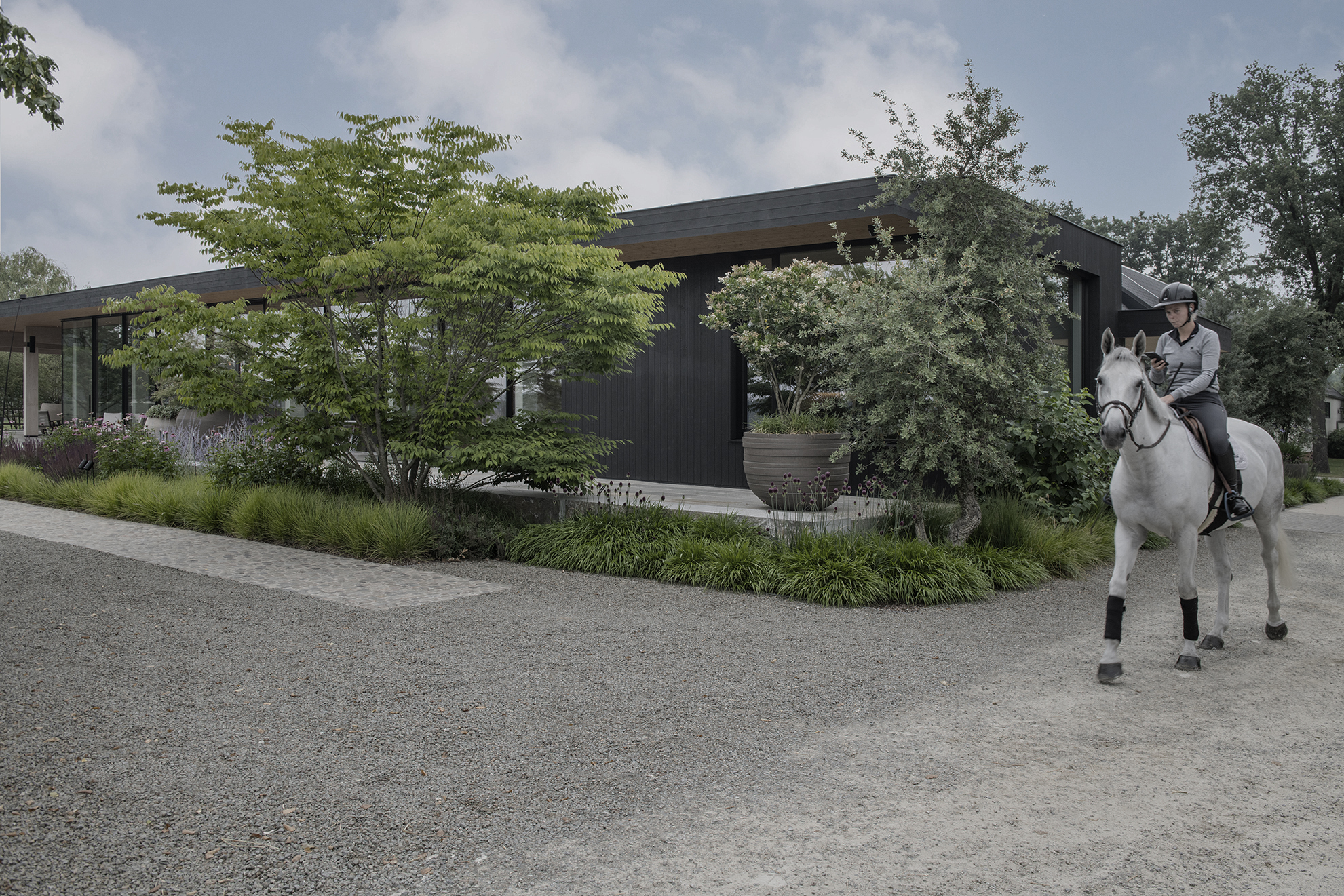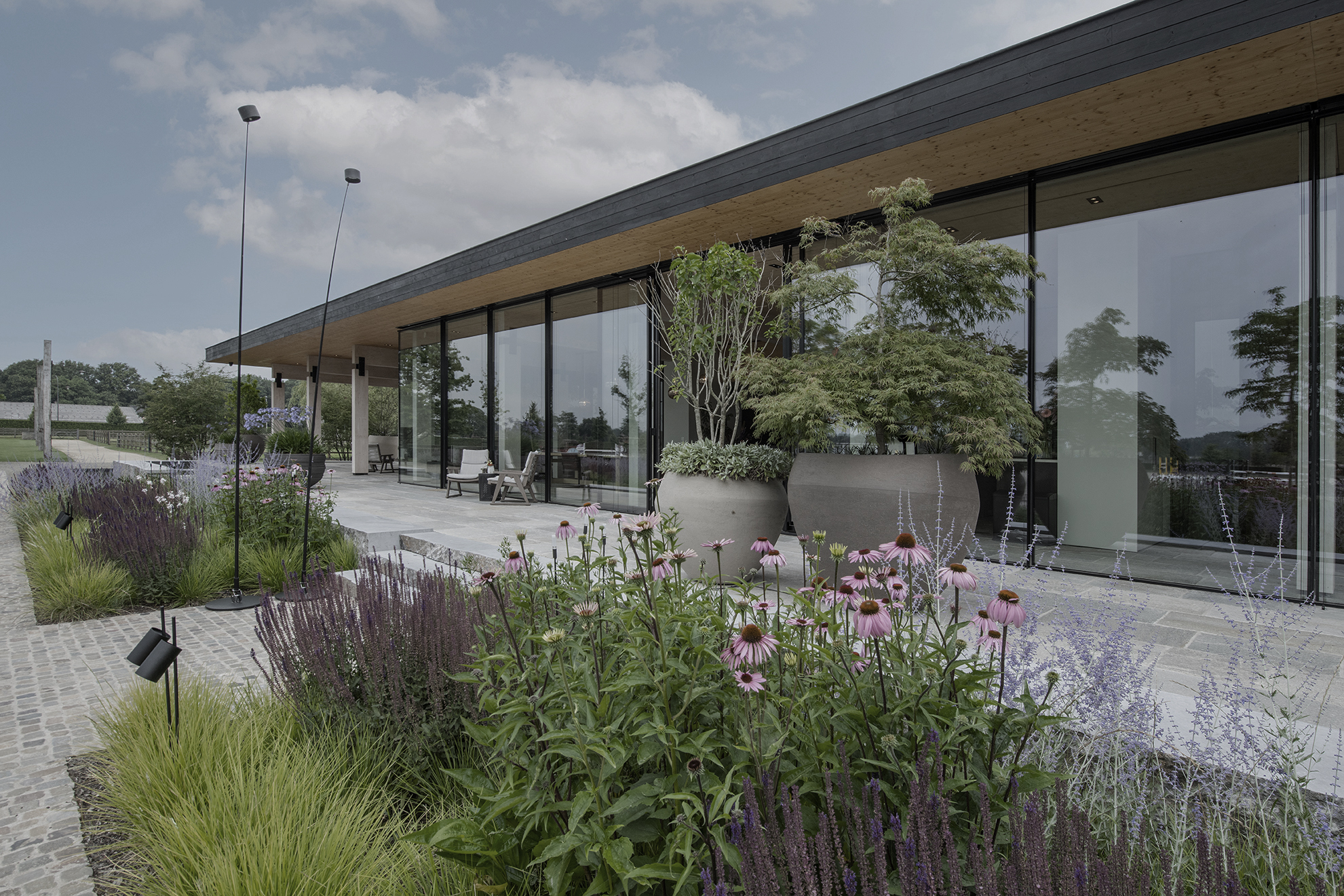 “De tuin voelt als een verlengde van ons interieur. Elke lijn, elk detail is verbonden met het landschap en de paarden die hier thuis zijn.”